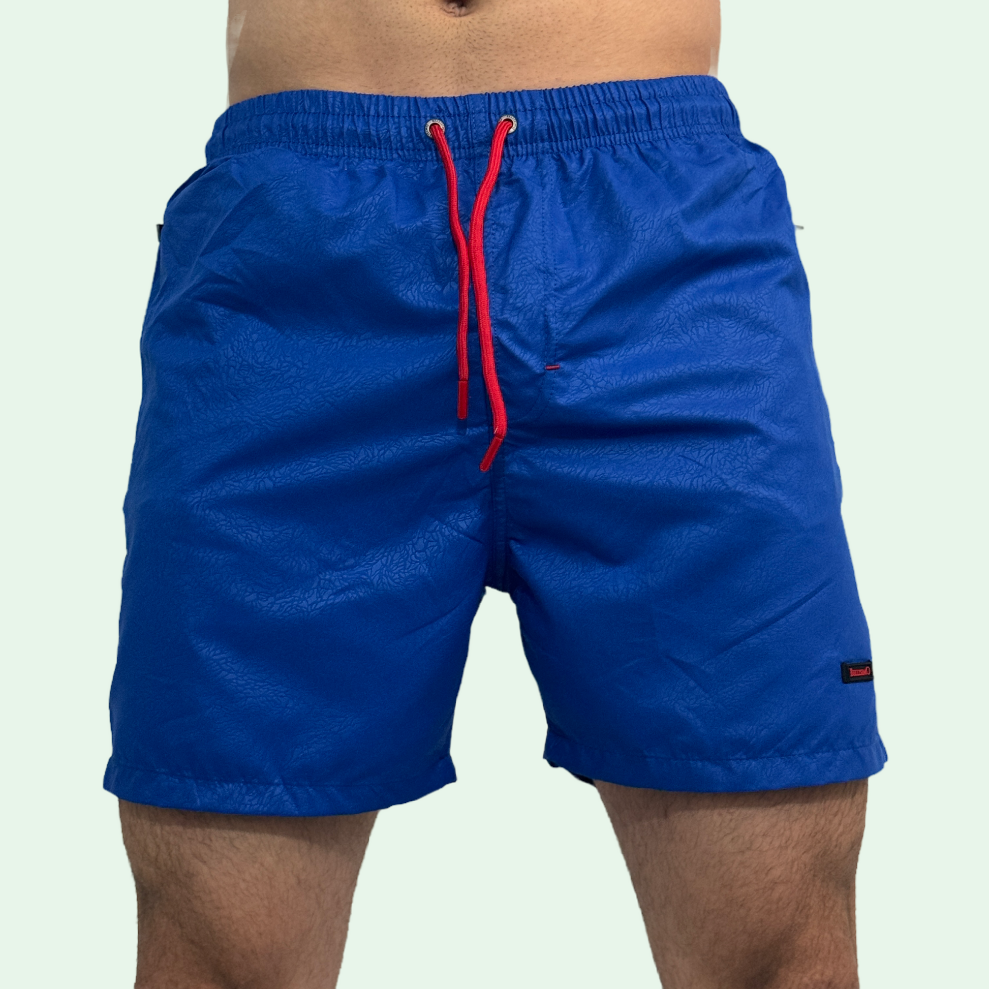 سراويل السباحة مصنوعة من نسيج تقني. حزام خصر مطاطي قابل للتعديل مع رباط. جيوب جانبية وجيب خلفي بحاشية.