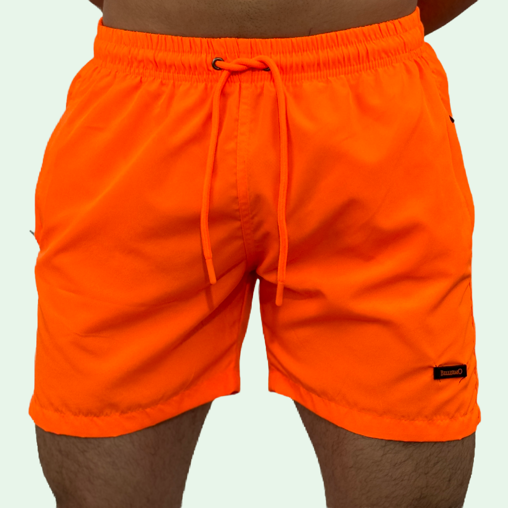 Swimming trunks made of a technical fabric. Adjustable elasticated waistband with drawstring. Side pockets and back welt pocket.